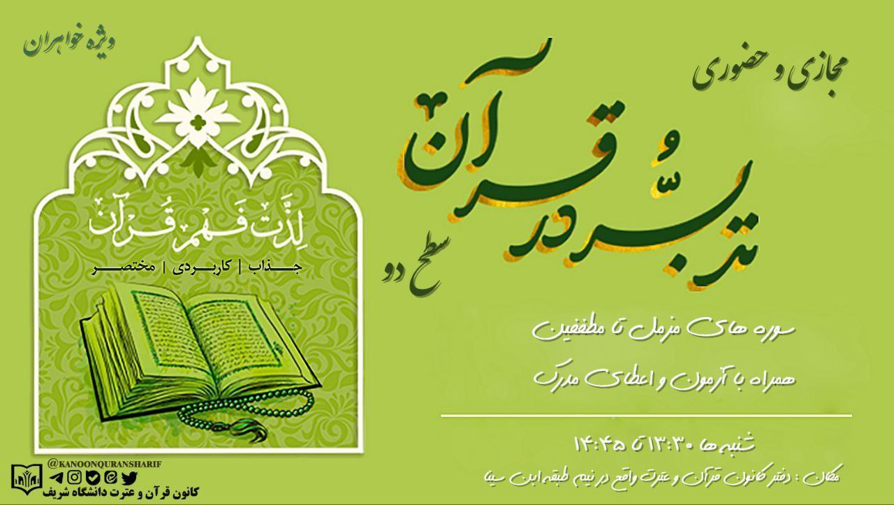 جلسات هفتگی تدبر در قرآن کریم (سطح ۲) | معاونت فرهنگی اجتماعی دانشگاه صنعتی شریف