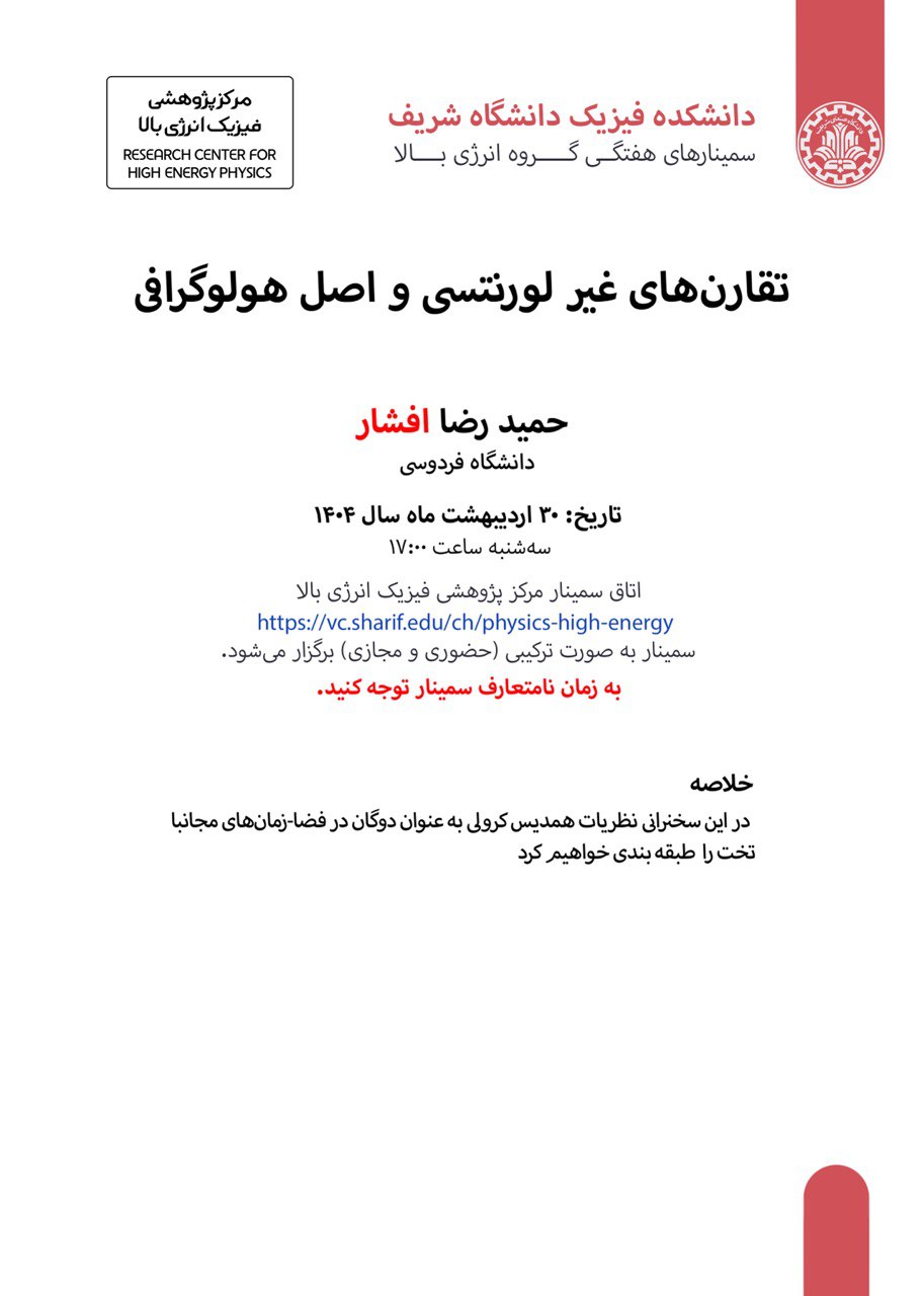 سمینارهای هفتگی مرکز پژوهشی فیزیک انرژی بالا