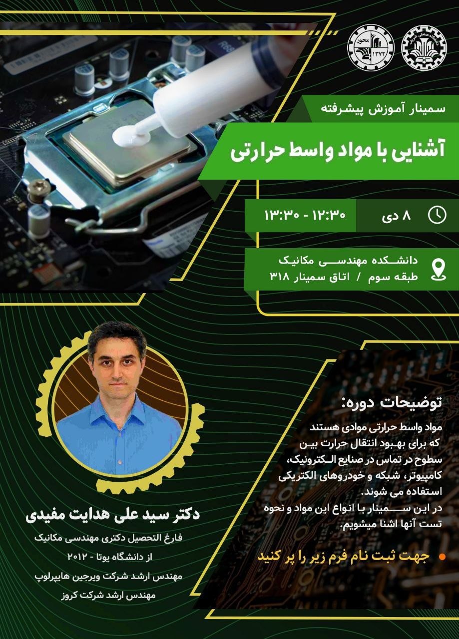❇️«مواد واسط حرارتی» 👤 ارائهدهنده: سید علی هدایت مفیدی 🔹فارغالتحصیل دکتری مهندسی مکانیک...