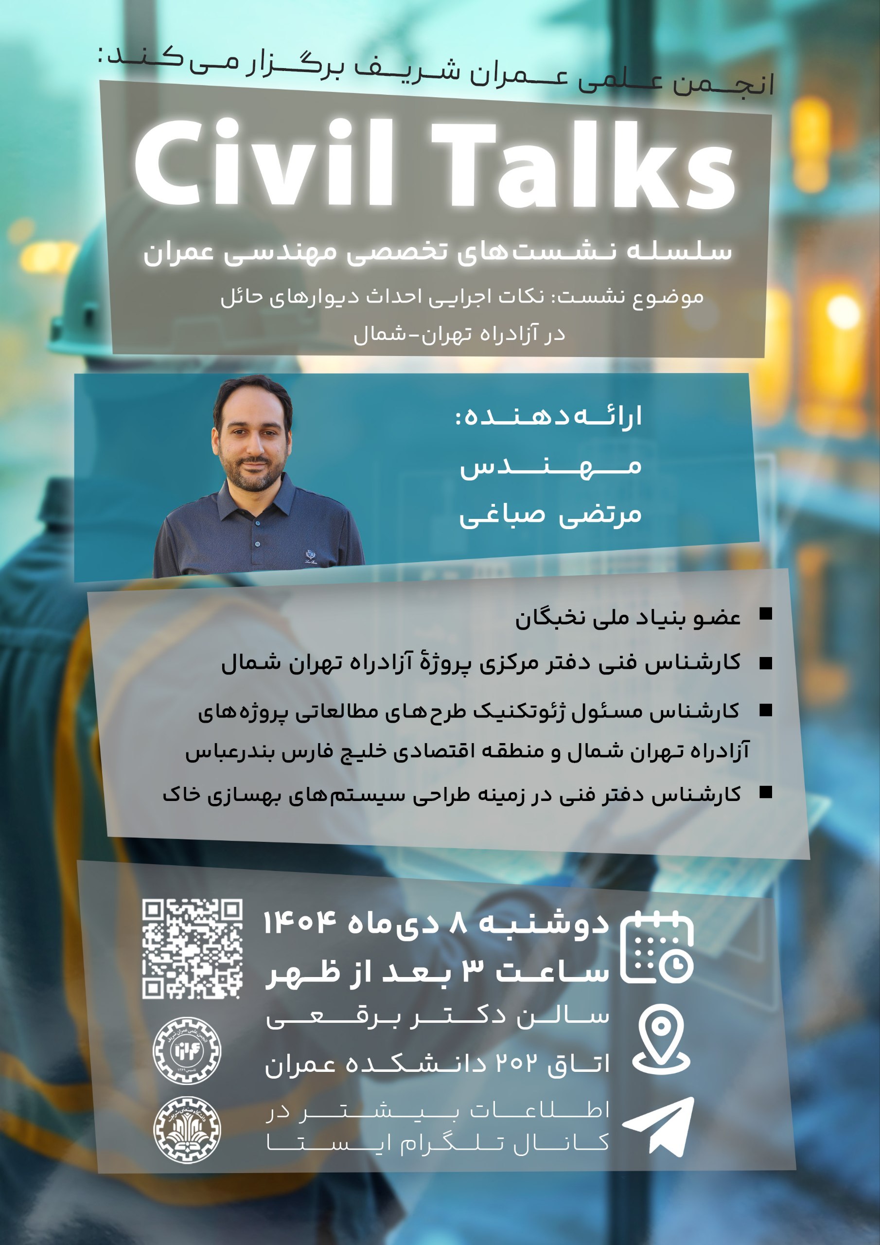 🧨 انجمن علمی مهندسی عمران دانشگاه صنعتی شریف(ایستا) برگزار میکند: ⚡️ سلسله جلسات《 Civil Talks 》...