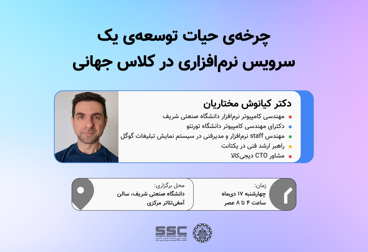 «کارگاه مهندسی نرمافزار» 🔴 موضوع: چرخهی حیات توسعهی یک سرویس نرمافزاری در کلاس جهانی 🧑...