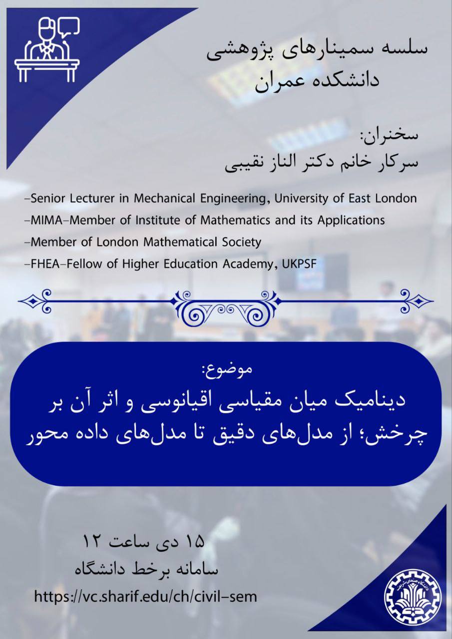 📌 معاونت پژوهشی دانشکده عمران دانشگاه صنعتی شریف برگزار میکند: 🔅 سلسله نشستهای پژوهشی 🔻 موضوع...