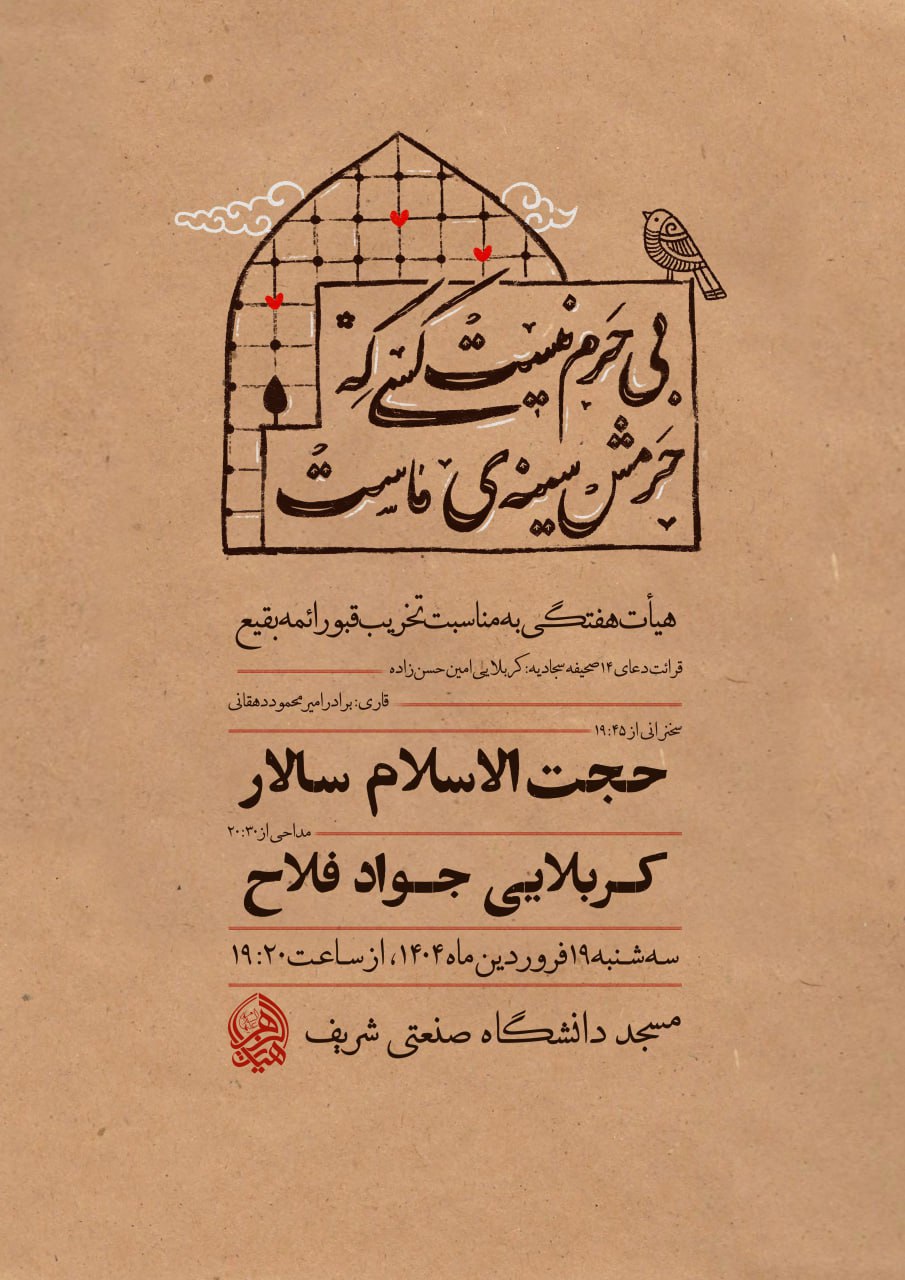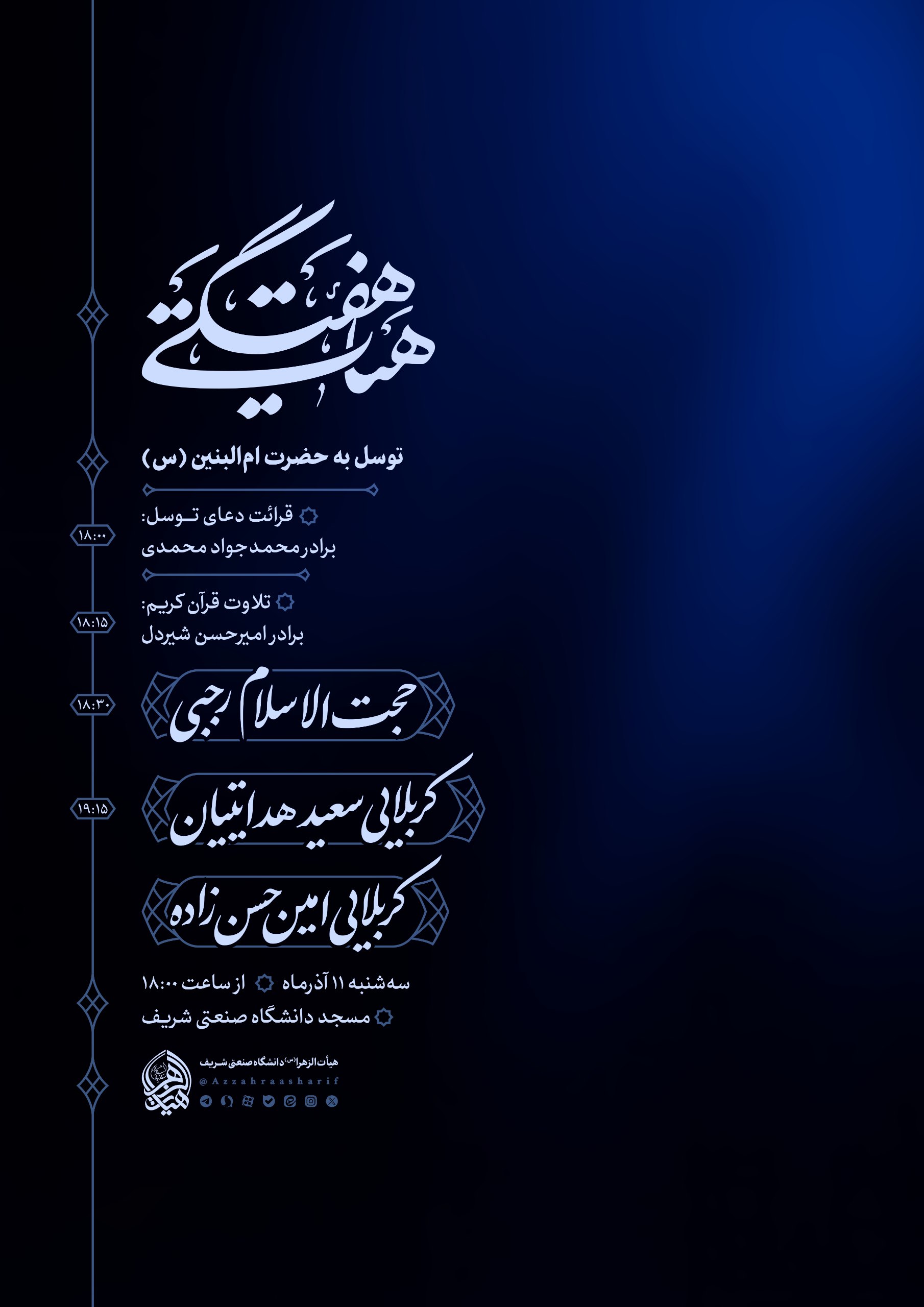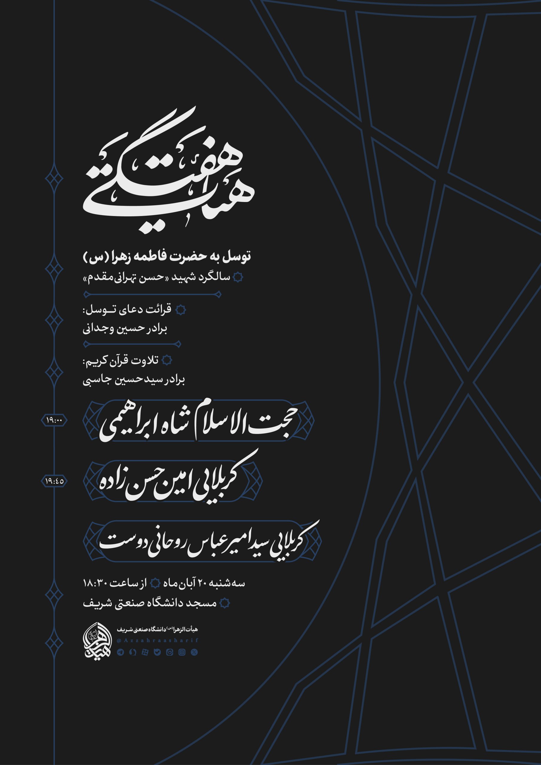 اطلاعیه مراسم هیأت هفتگی | معاونت فرهنگی اجتماعی دانشگاه صنعتی شریف