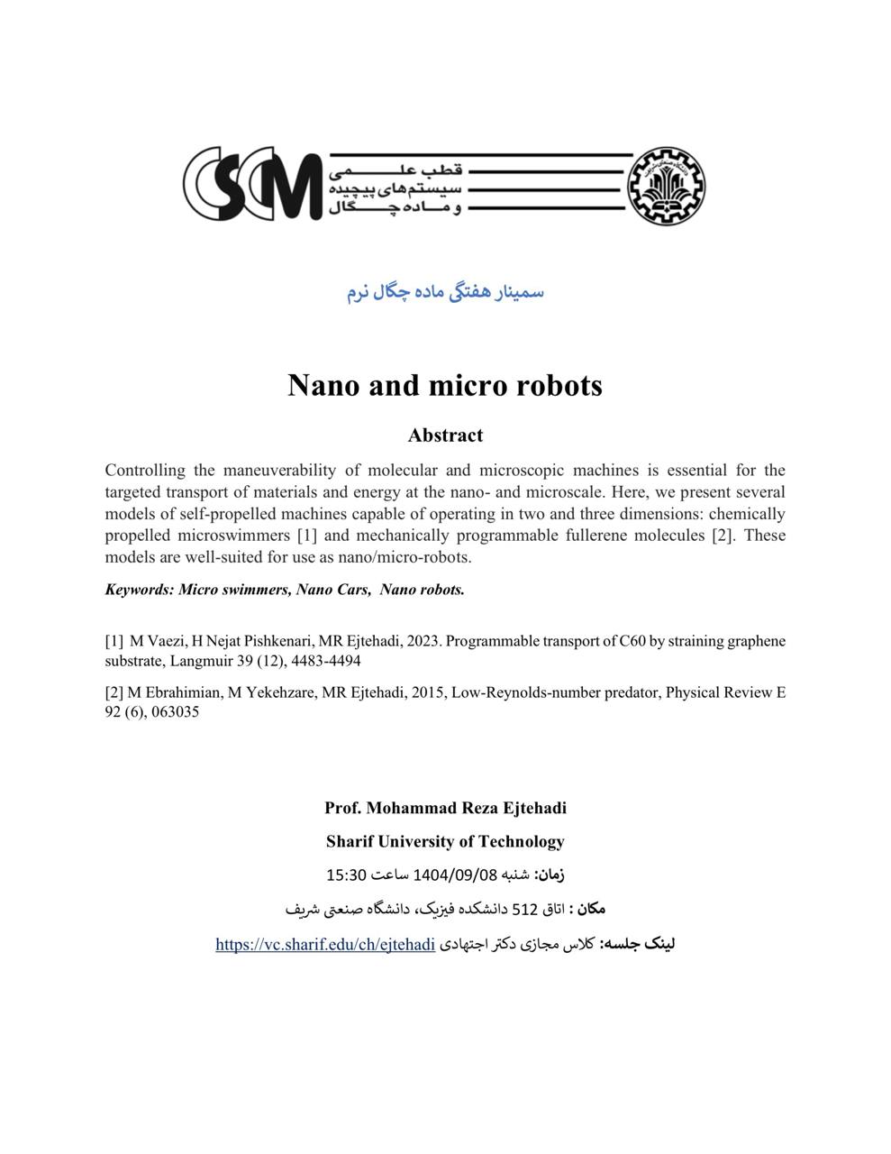 ⭕️ سمینار هفتگی گروه ماده چگال نرم 💡موضوع ارائه: Nano and micro robots 🗣 ارائه...