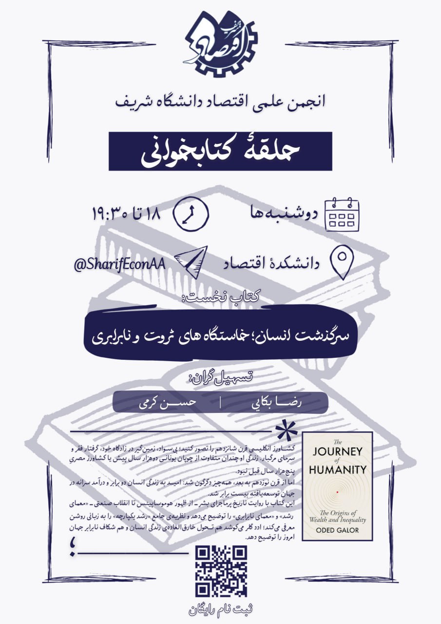 📢 انجمن علمی اقتصاد دانشگاه شریف برگزار میکند: 🔷 حلقهٔ کتابخوانی • کتاب اول: 📚سرگذشت انسان؛...