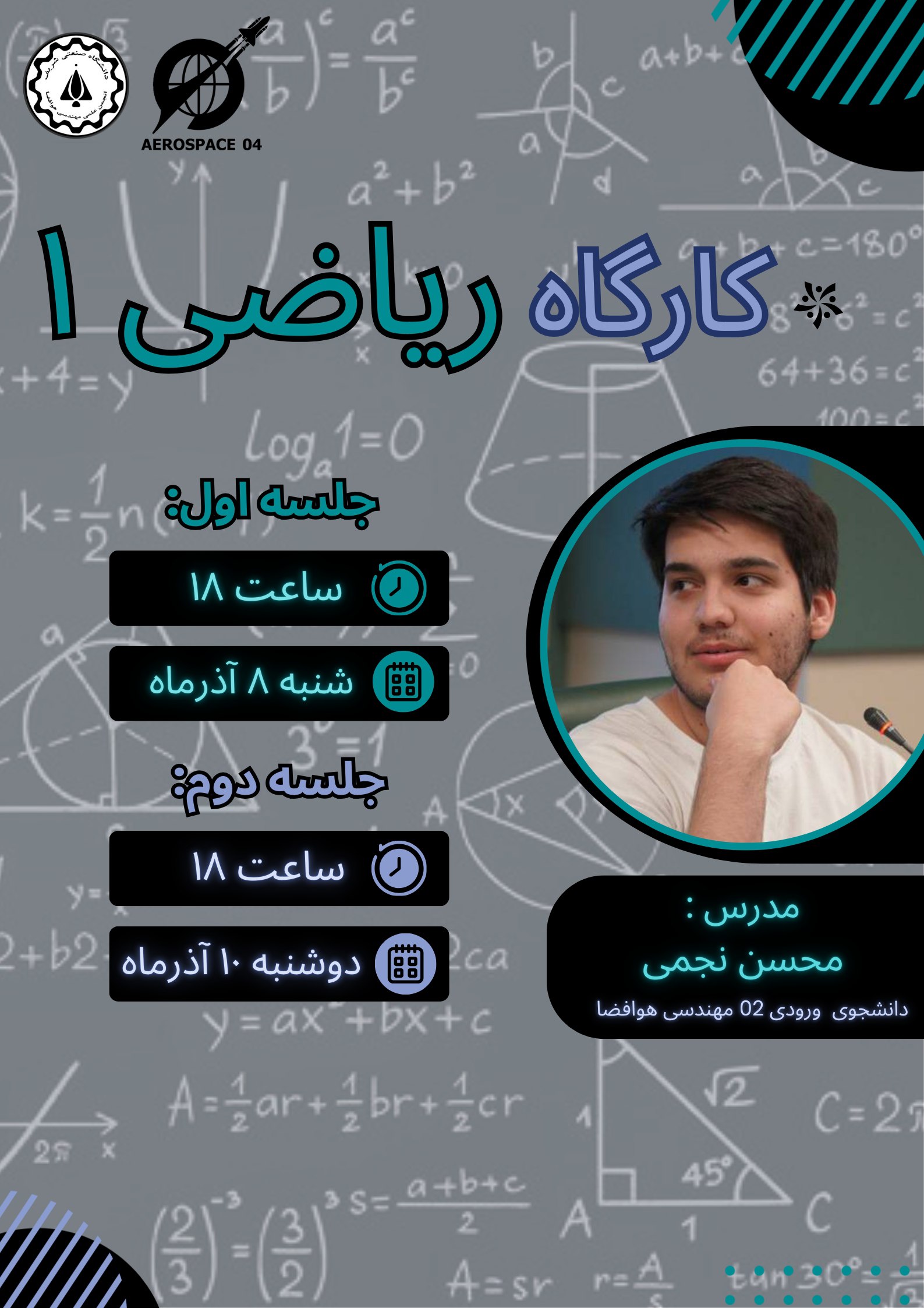 🔉انجمن علمی دانشکده مهندسی هوافضا برگزار میکند: 💠کارگاه جمعبندی میانترم ریاضی۱ ⬅️ویژه...