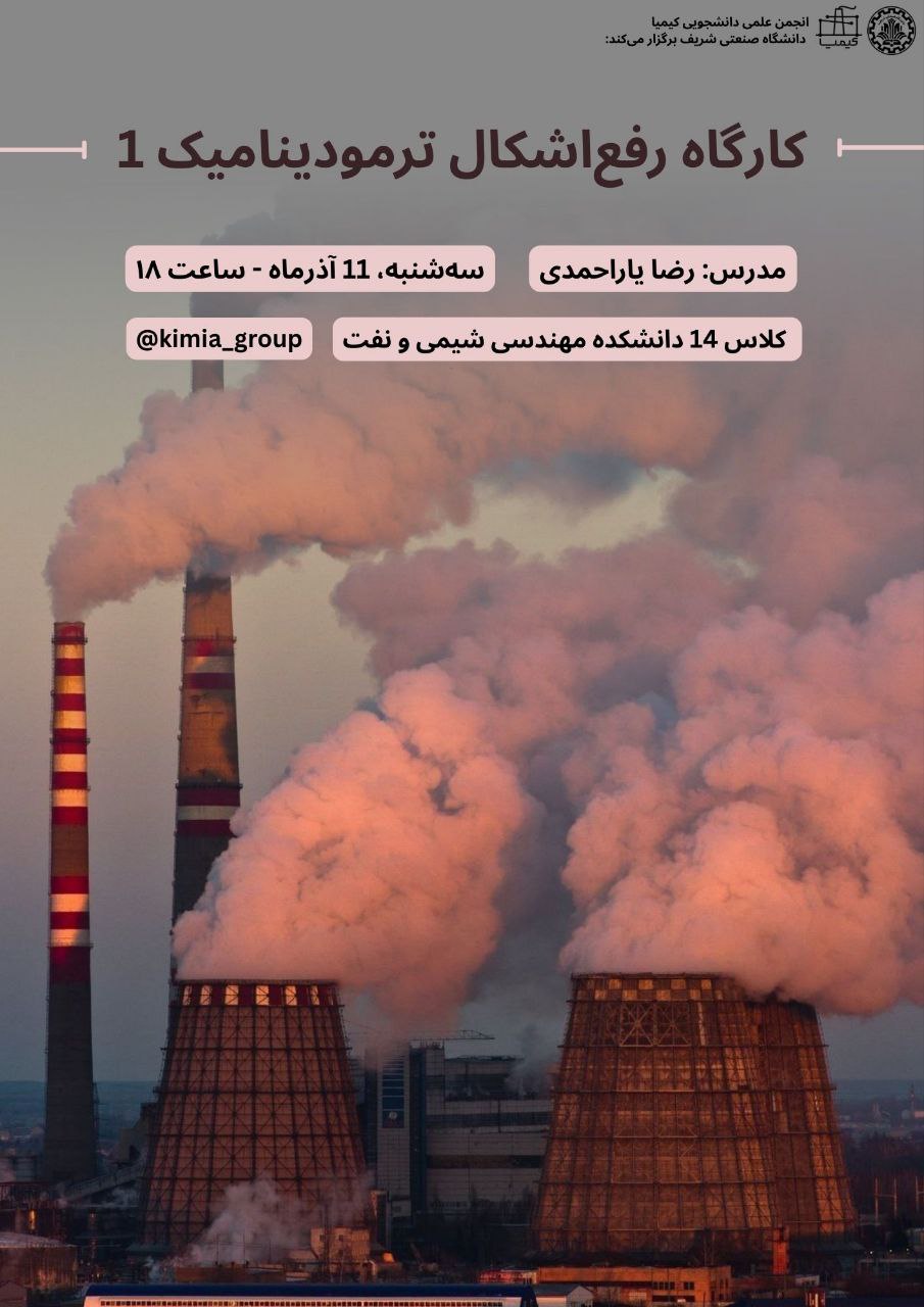 📣 انجمن علمی دانشجویی کیمیا برگزار میکند: 💬 کارگاه رفعاشکال ترمودینامیک ۱ 👤 مدرس: رضا...
