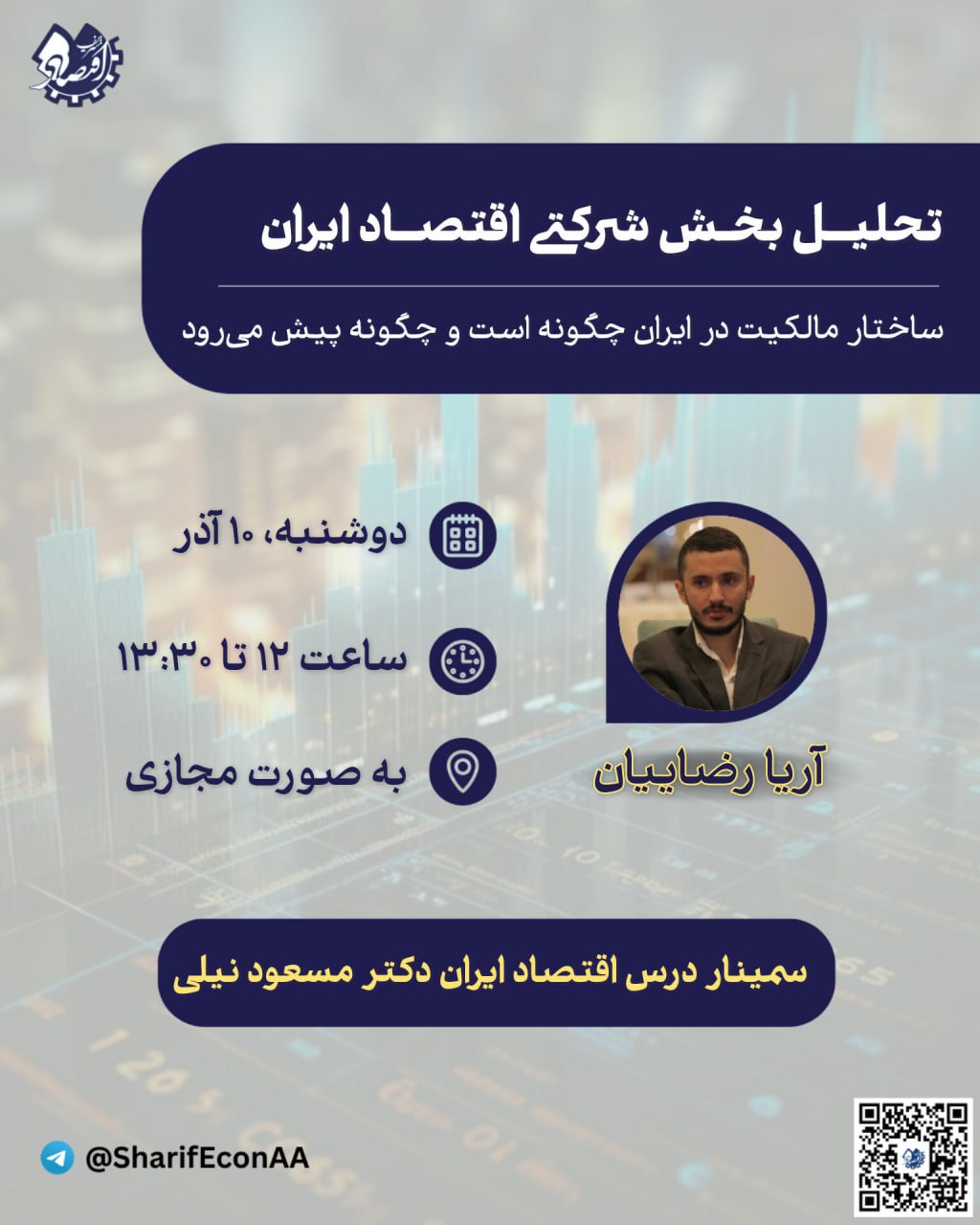 📢 سلسله جلسات اقتصاد ایران 💡 تحلیل بخش شرکتی اقتصاد ایران: ساختار مالکیت در ایران...