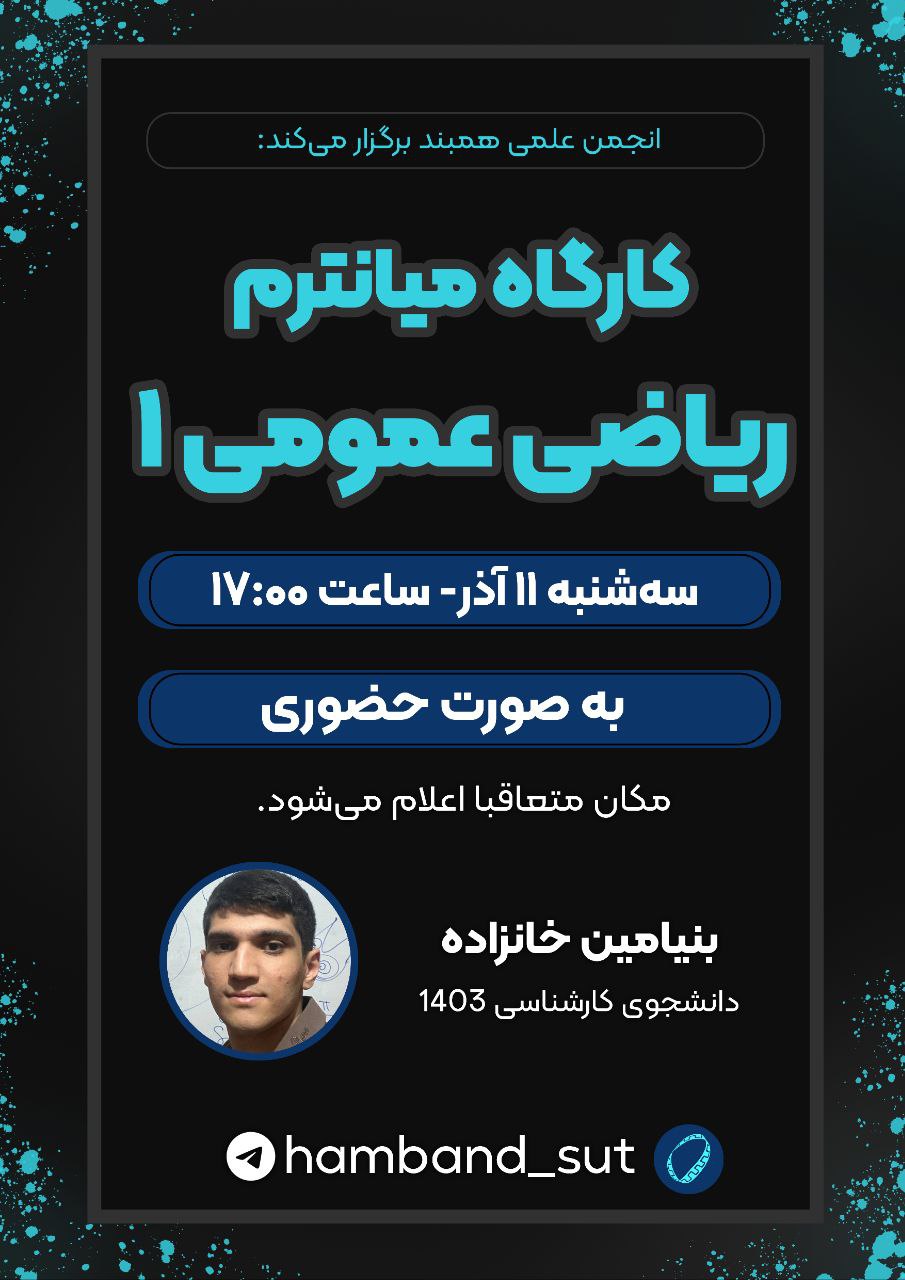 ❤️انجمن علمی همبند برگزار میکند: 👥کارگاه میانترم ریاضی عمومی ۱ 👤ارائه دهنده: بنیامین خانزاده...