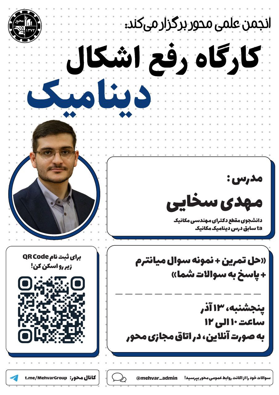 ⚜ انجمن علمی محور برگزار میکند: «کارگاه رفع اشکال دینامیک» 👤 ارائهدهنده: مهدی سخایی 🔹 دانشجوی...