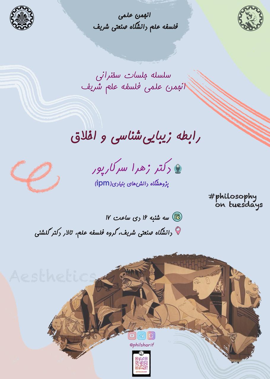 ◆ سلسله جلسات سخنرانی «انجمن علمی فلسفه علم شریف» ◆ «رابطه زیباییشناسی و اخلاق» ◆...
