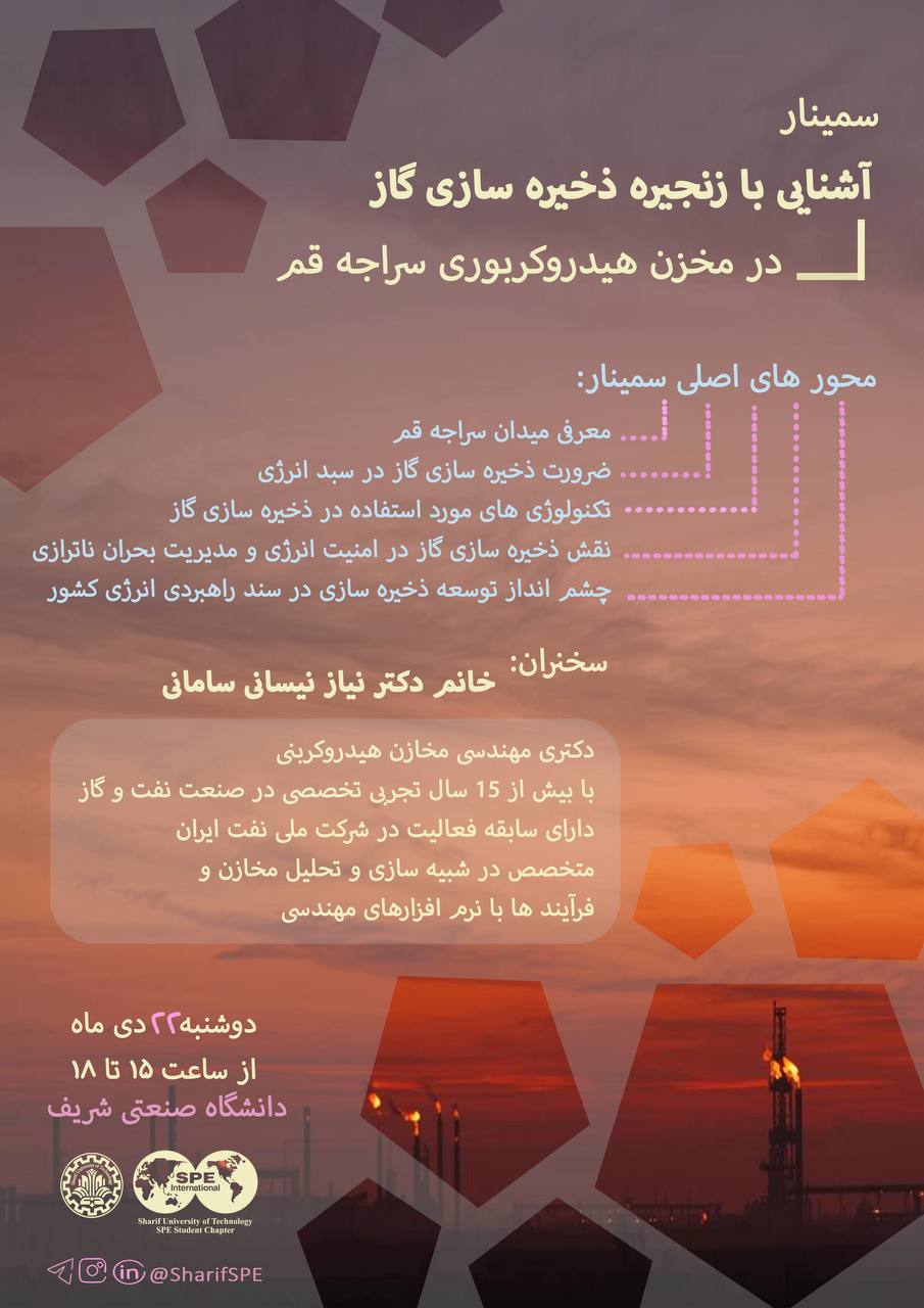 📚 انجمن بینالمللی مهندسان نفت دانشگاه صنعتی شریف برگزار میکند: سمینار «آشنایی با زنجیره ذخیره...